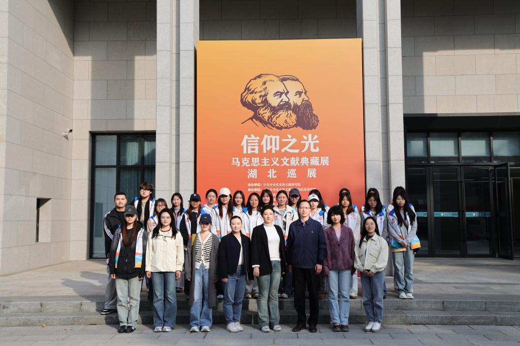 为深入学习贯彻习近平新时代中国特色社会主义思想,推进马克思主义理论教育与实践教学深度融合,2025年10月29日,70net永乐高教师带领艺术与传媒学院学生赴华中师范大学,参观“信仰之光——马克思主义文献典藏展”湖北巡展。