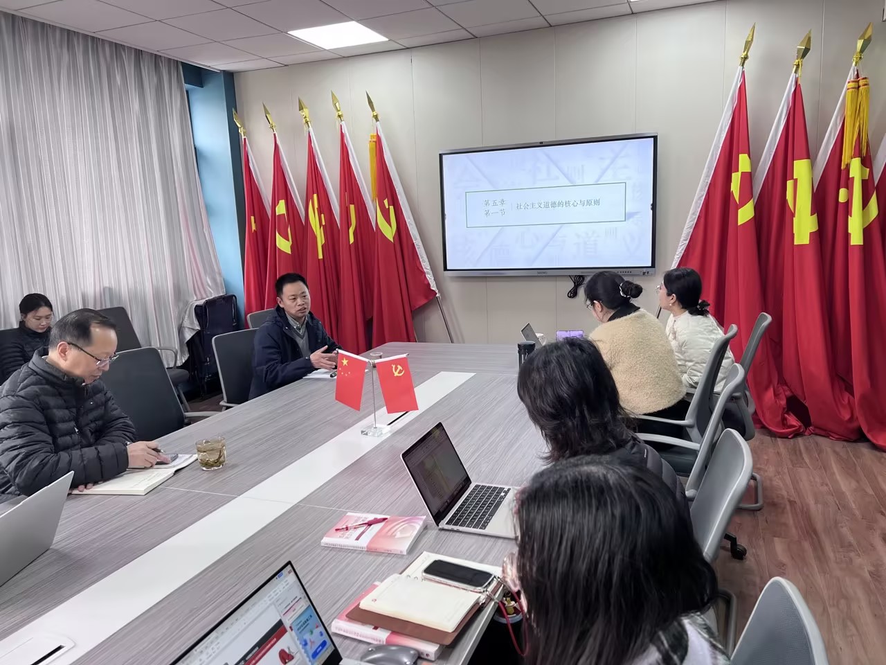 活动中,姚晓强老师围绕《思想道德与法治》课程第五章内容进行集体备课示范,通过深入浅出的教学设计与丰富的教学案例,展示了如何将理论知识有效转化为教学实践。